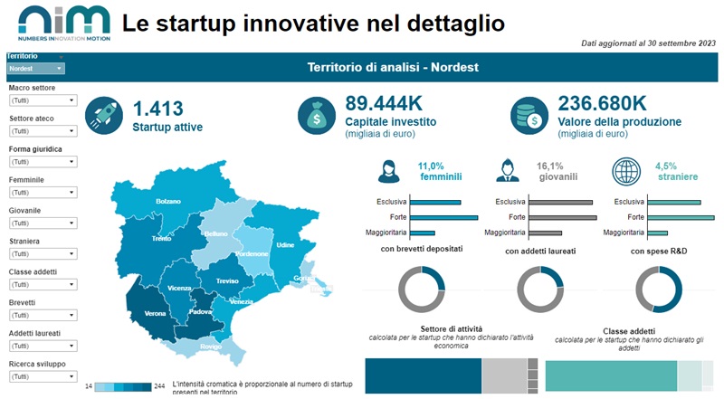 Nasce l’osservatorio del Nordest sull’economia dell’Innovazione NIM, (Numbers Innovation Motion), un progetto di Galileo Visionary District realizzato in collaborazione con InfoCamere – la società delle Camere di commercio per l’innovazione digitale) con il contributo della Camera di Commercio di Padova - NIM permette di trasformare i dati del più̀ importante database aziendale ufficiale del Paese (il Registro delle Imprese) in informazioni fruibili con infografiche, commenti, analisi e report, grazie ad una piattaforma web-based liberamente consultabile da cittadini, imprese, Pubbliche Amministrazioni e dai Media. Un progetto che ha coinvolto, e coinvolgerà in futuro, imprese e Pubbliche Amministrazioni, Università, startup specialist ed esponenti del mondo Venture Capital in un dialogo continuo sul presente e soprattutto sul futuro delle nostre imprese innovative.